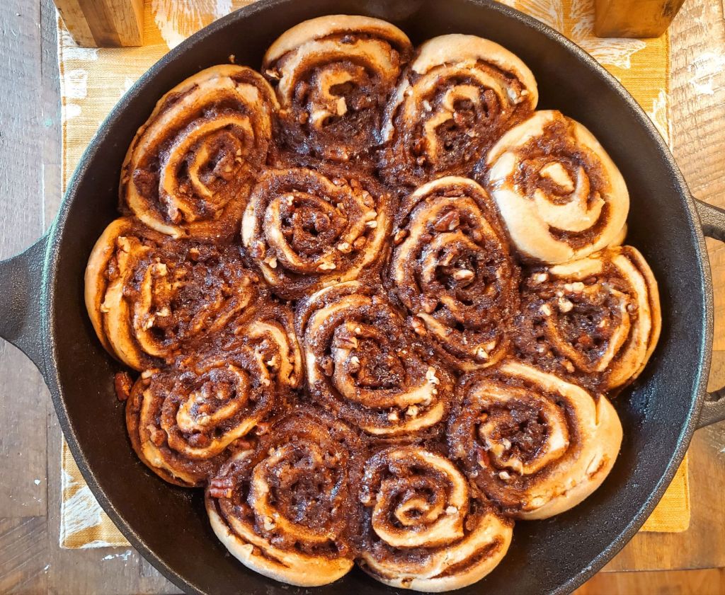 Maple Orange Pecan Sourdough Discard Cinnamon Rolls with Fresh-Squeezed Orange Juice