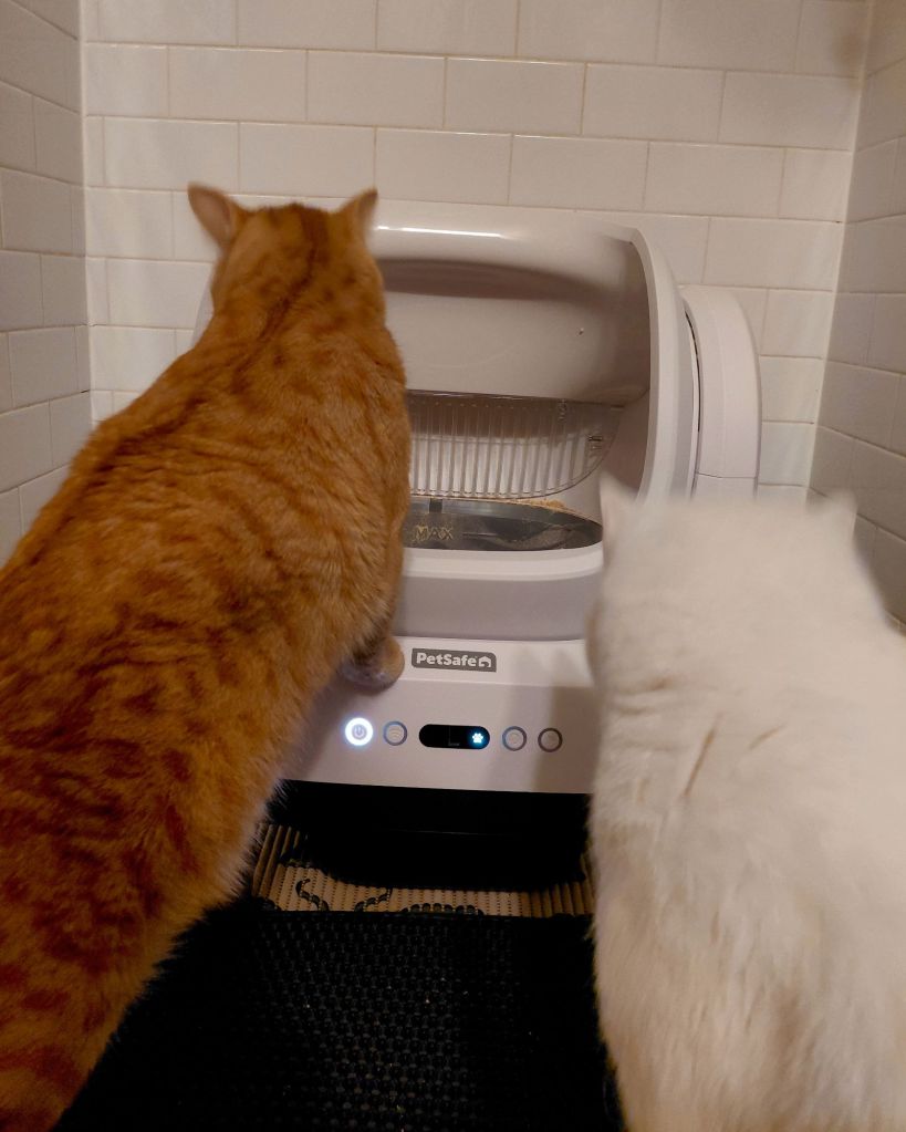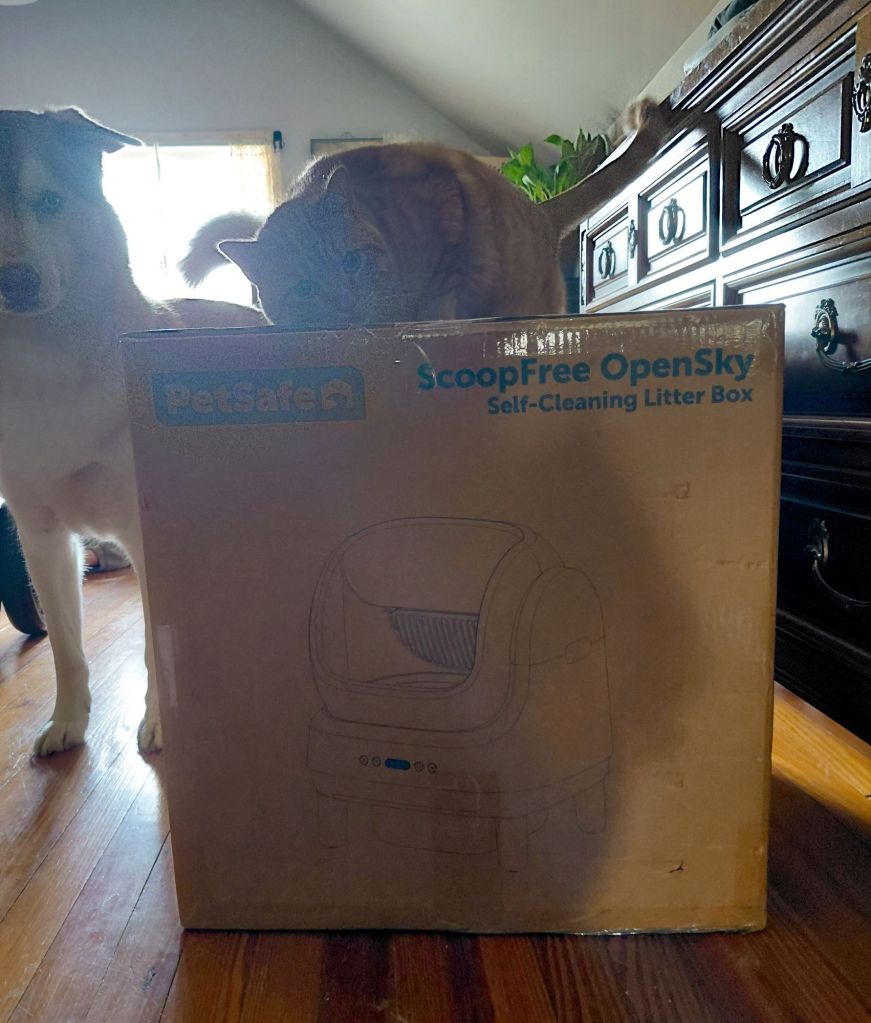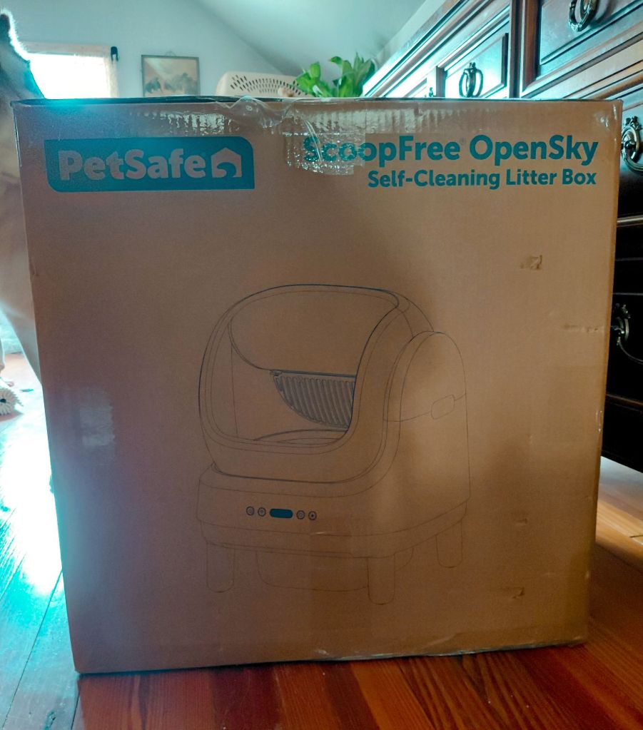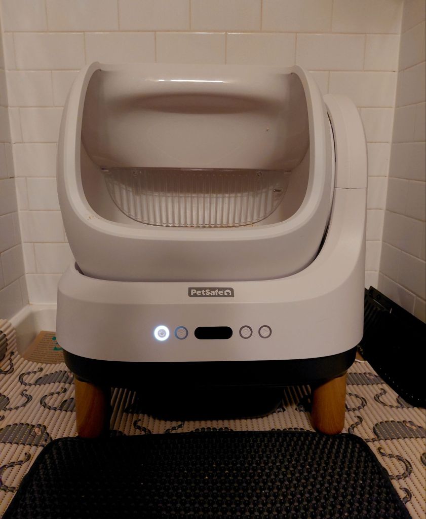 I have been spying this Pet Safe Scoop Free, Self-Cleaning Litter Box for the longest time, but continued to talk myself out of it because I don’t want Smart Devices in my home. So much so, that I shocked my original-to-the-1940s-home copper wire back to life and installed a vintage 1986 landline: