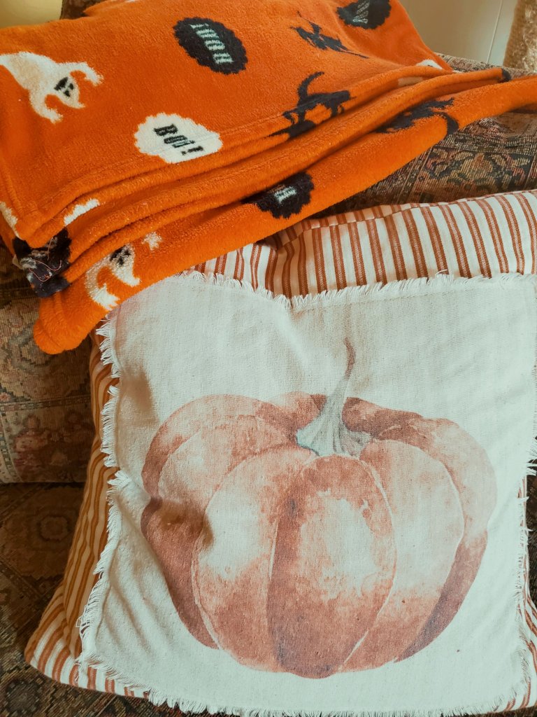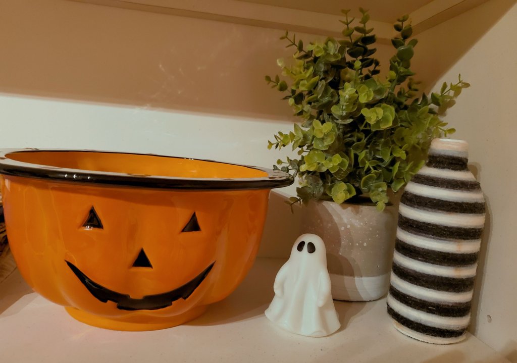 I had a table runner with cute little ghosts on the cabinets in the living room under the window.