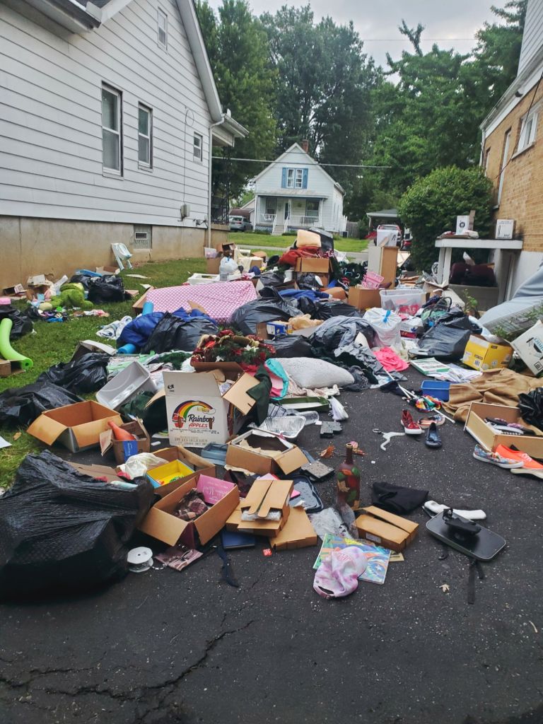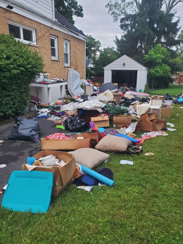 It’s been a crazy week over here!!! Beginning Monday morning, men began emptying the contents of the home of our neighbor caddycorner to us all over the lawn: furniture, beds, TVs, clothes (so much clothes), personal records, literally every item in the home just tossed out the doors onto the front lawn, driveway, deck, back yard… so of course I walked over & I asked what was going on with all this stuff.