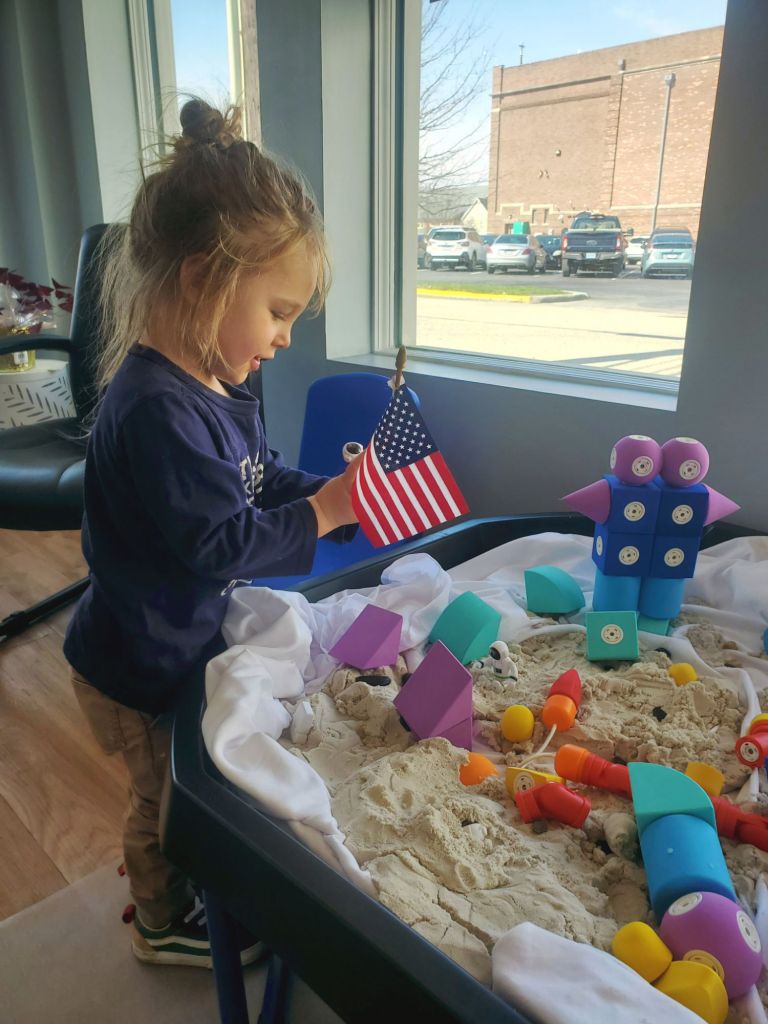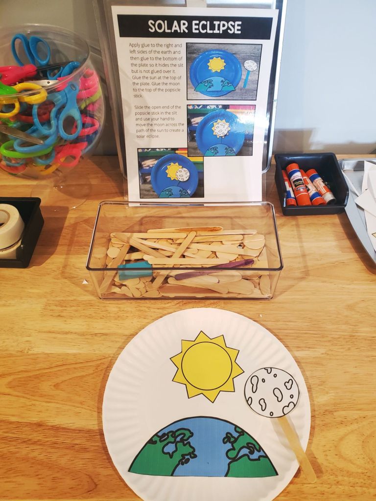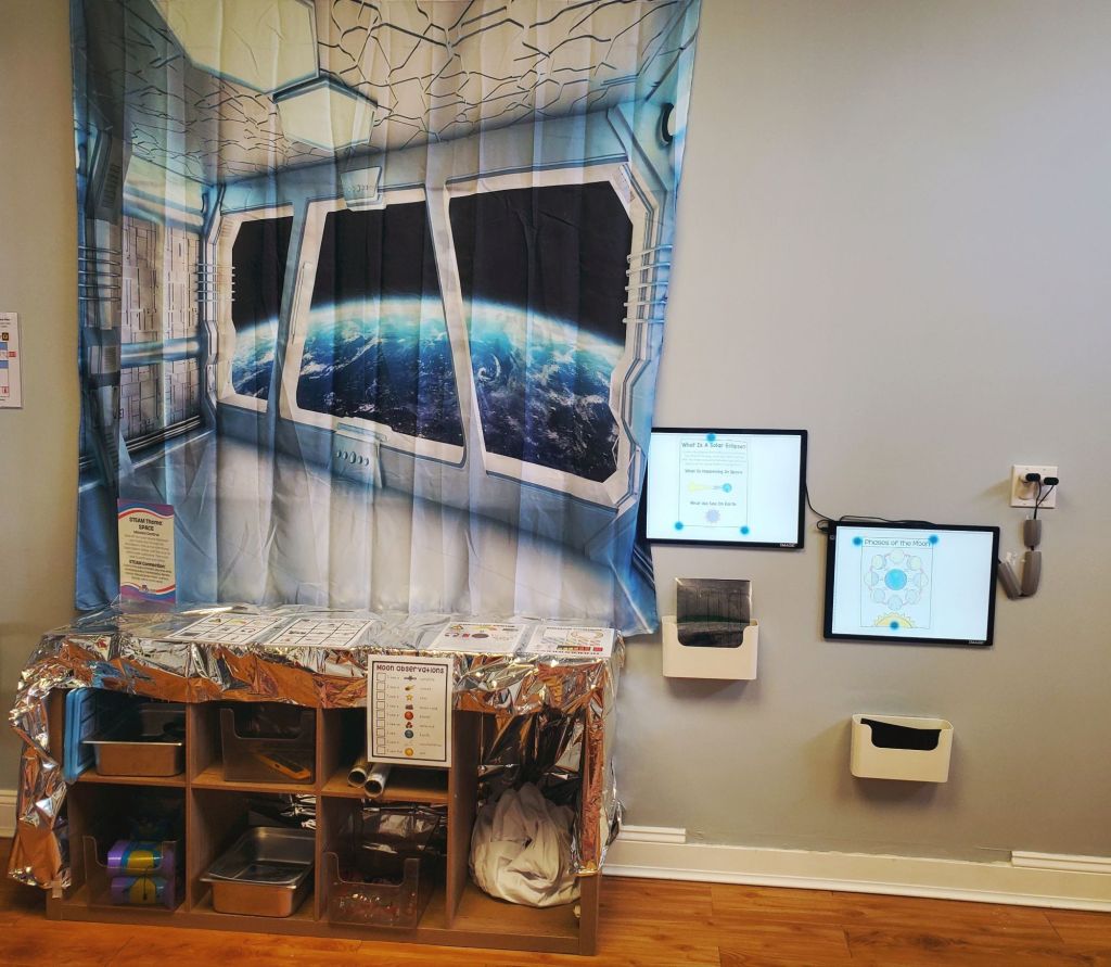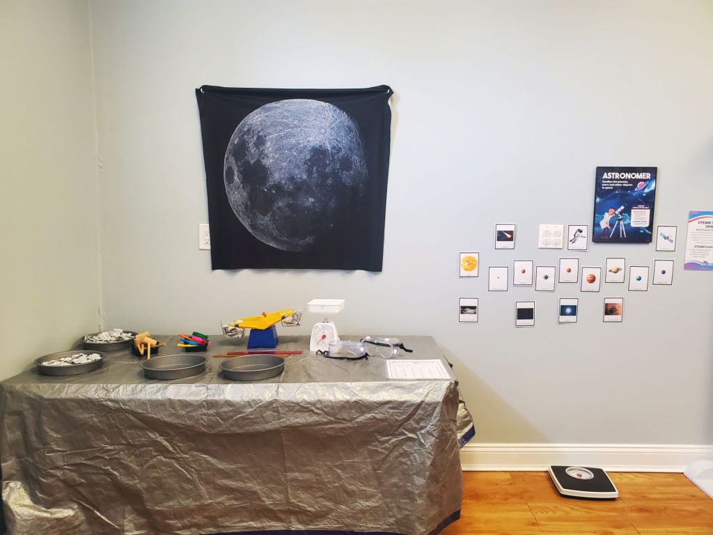 This room changes each month based on what theme is going on. For March the theme is Space. They had different stations set up to learn about outer space as well as solar eclipses with the 2024 Total Eclipse coming to our area!