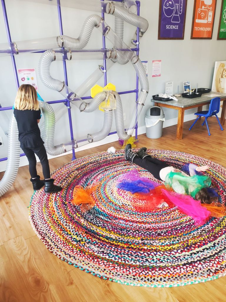 The Amazing Air wall was also a lot of fun. The kids took turns laying down on the ground and having the scarves and loofahs hit them in the face. They thought it was really funny.