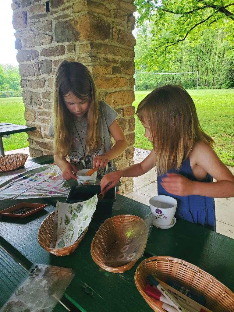 Our second art project was decorating flower pots, then filling with dirt & planting wildflower seeds. Mia mentioned that it was great for our Botany class!