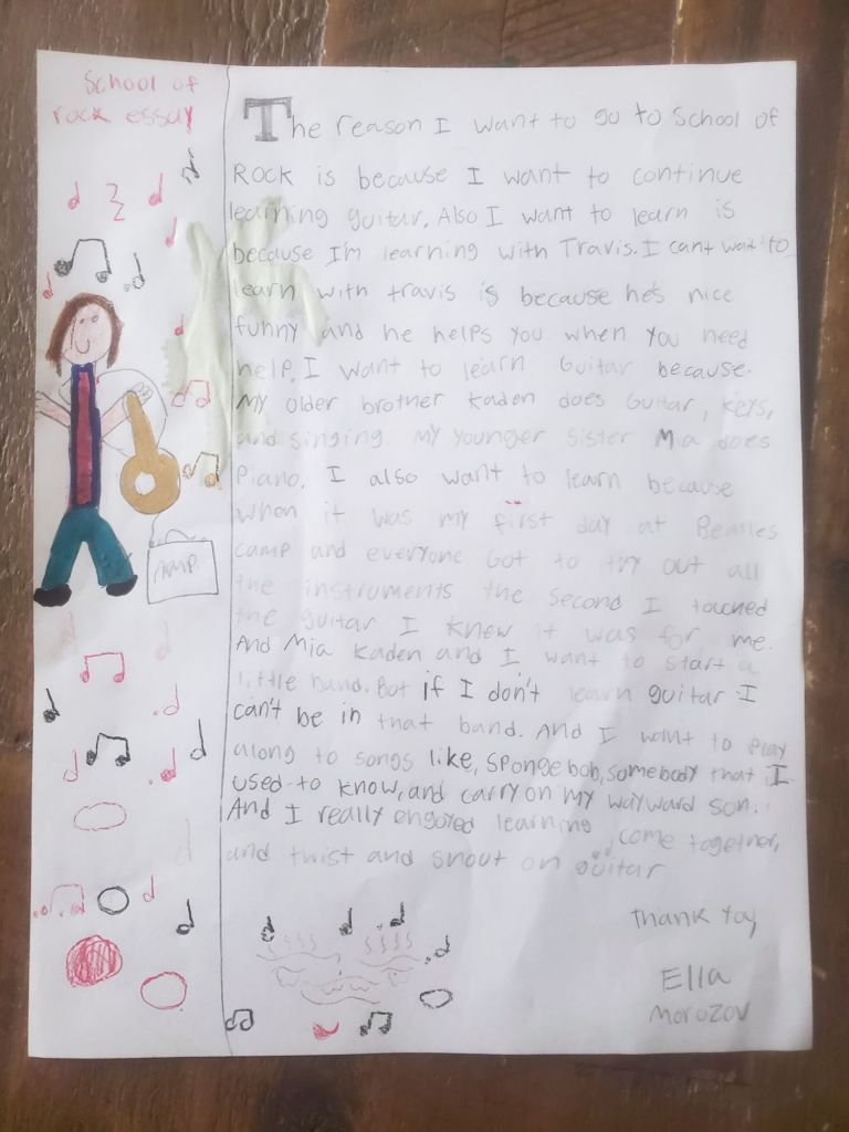After her performance, my mom asked if Ella wanted to go to another SOR Music Camp which she, of course, did! That was really, really kind of her. My mom signed Ella up for her choice of the upcoming Pop Legends group in a couple weeks! She is really excited & grateful to get to go back! Hopefully soon, she’ll get to go weekly for guitar lessons!