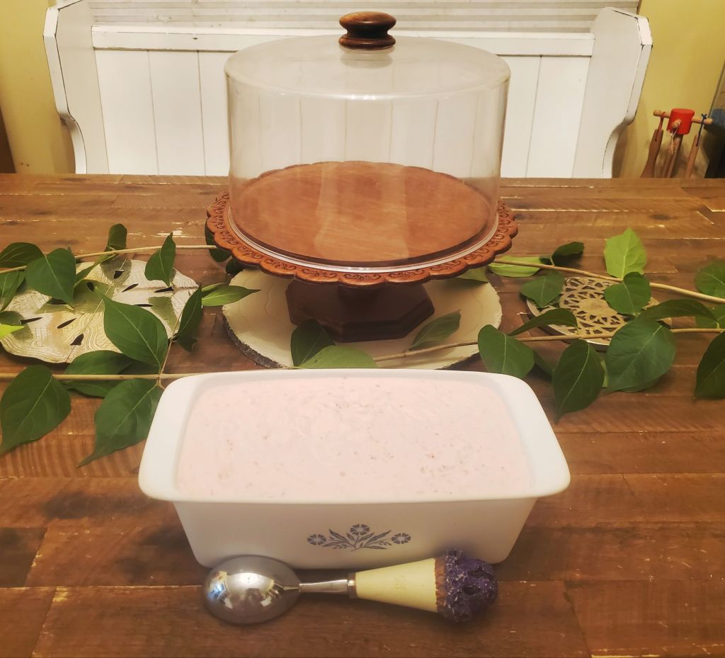 Once it freezes & you are ready to eat, let it sit on the counter for a few minutes to let it soften up a tiny bit to make scooping easier. Scoop into bowl or cone & enjoy!