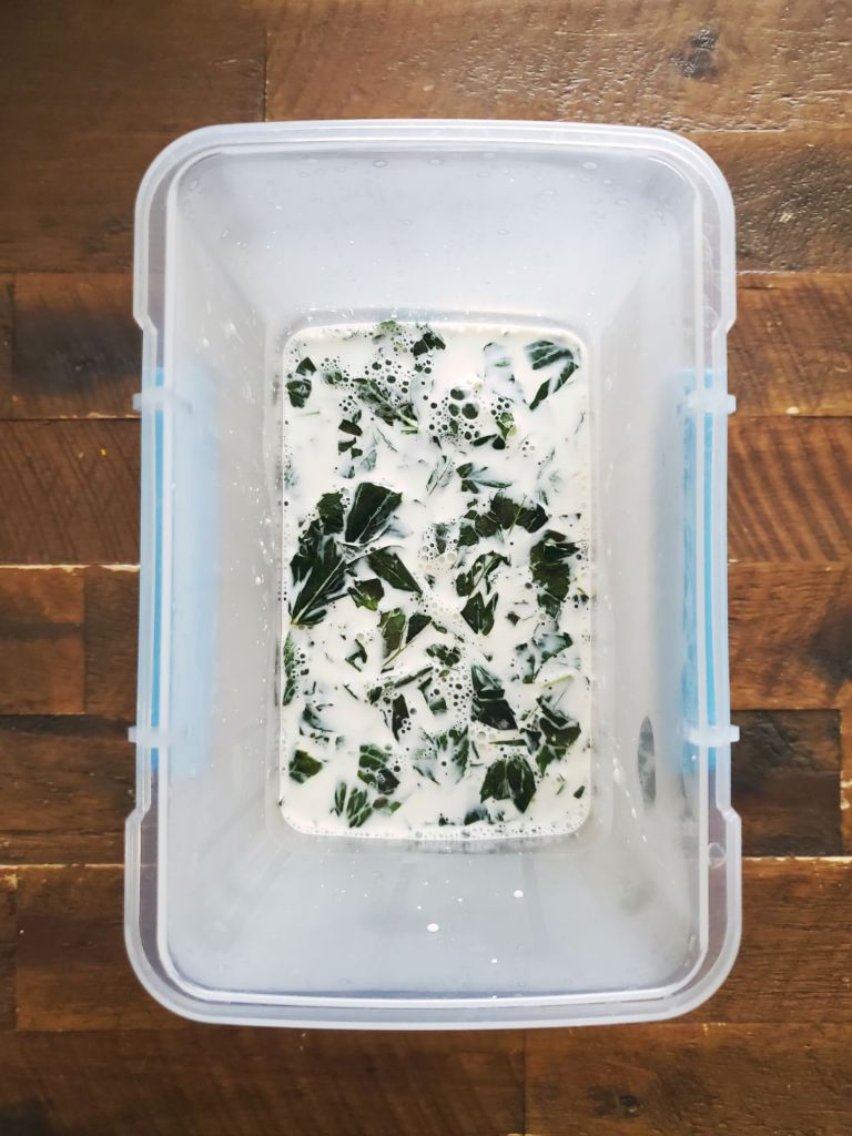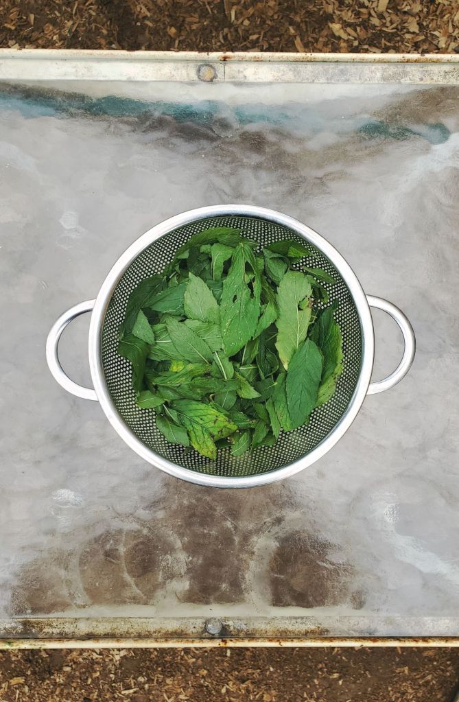 We collected and picked a good amount, then took our colander inside to clean & roughly cut the mint. I find using kitchen scissors easiest for this.
