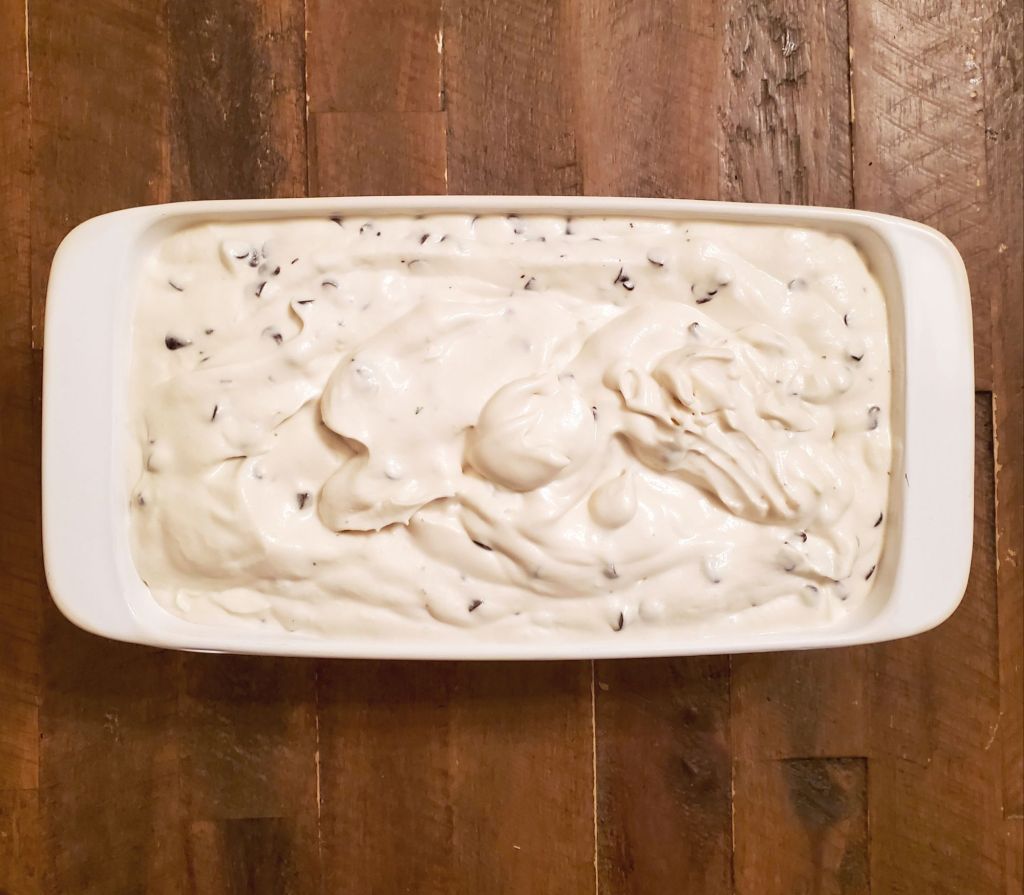 5 – FOLD in chocolate chips gently & evenly throughout the cream mixture.
