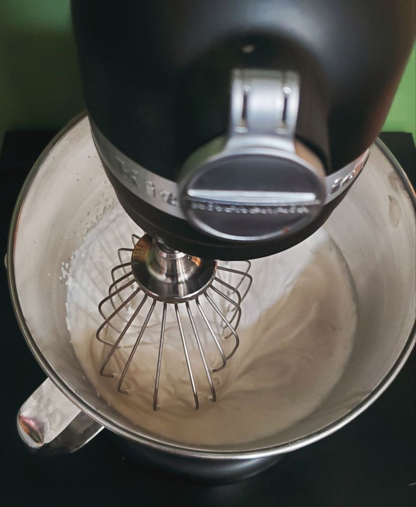 Once Whipped, add in 1 can of Ukrainian Sweetened Condensed Milk & whip again. I imagine American Condensed Milk will work if you don’t have access to a European market, but the Ukrainian one just tastes SO much better {see note}!!! Finally, add 1 tablespoon of vanilla extract & whip again one final time.