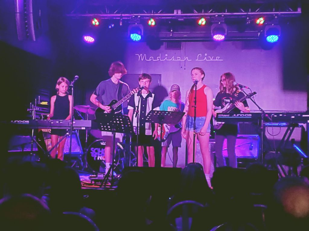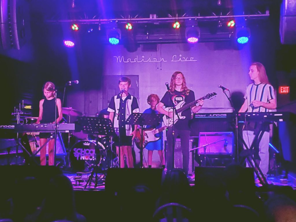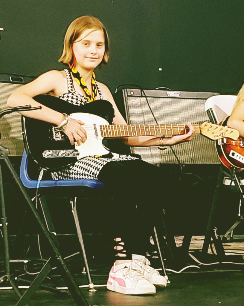 She recently completed two School of Rock Camps in June: Beatles Camp & Pop Legends Camp. Before Beatles Camp, she only played piano. While there, she fell in love with guitar.