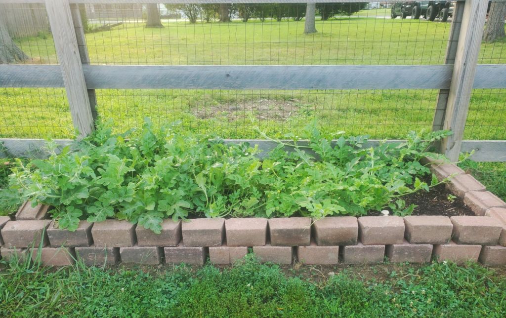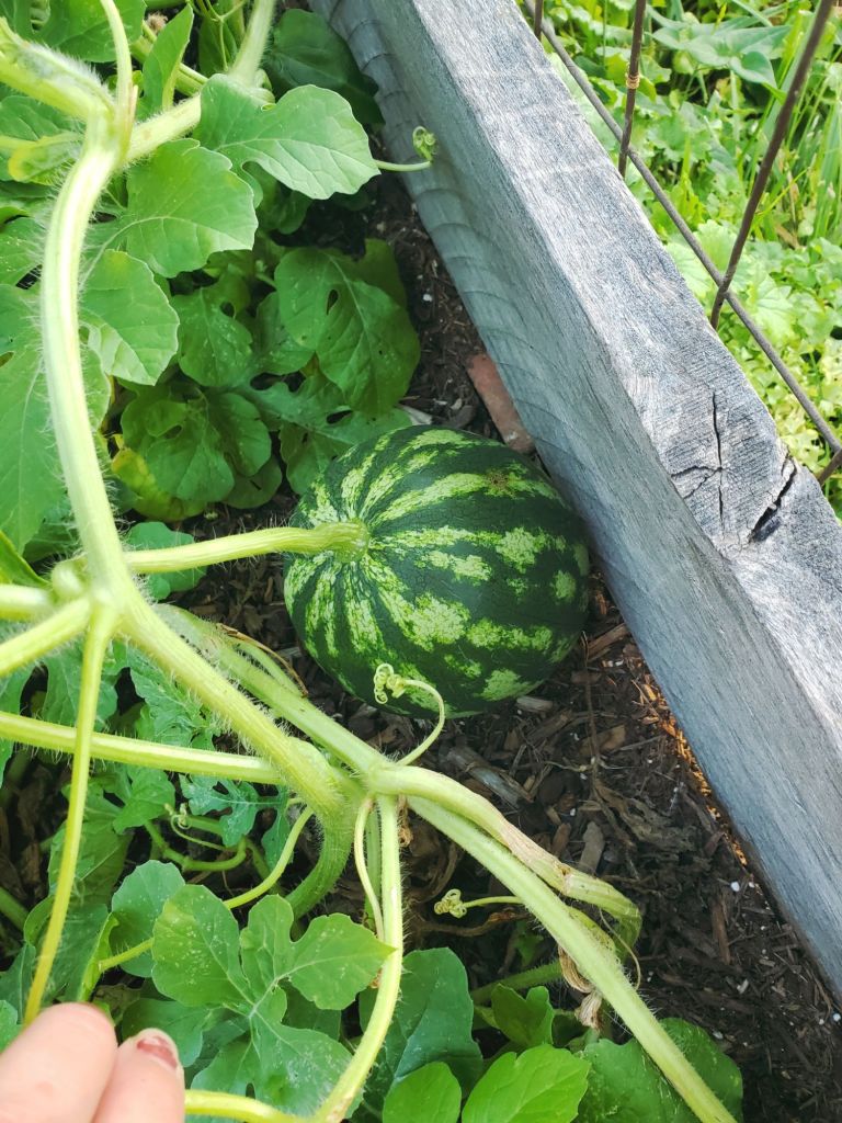 We added 4 new beds to our garden this year for fruits & veggies. One of them being for watermelon, which we grew from seed and will be re-growing from their seeds for next year.