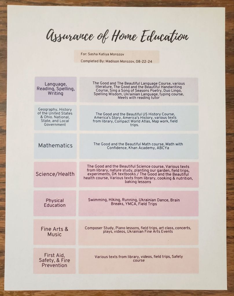 I decided to make a new template this year for my Assurance of Home Education. I wanted to keep it simple, but still fun & aestheticially pleasing! This is how I made ours for the 2024-2025 school year!