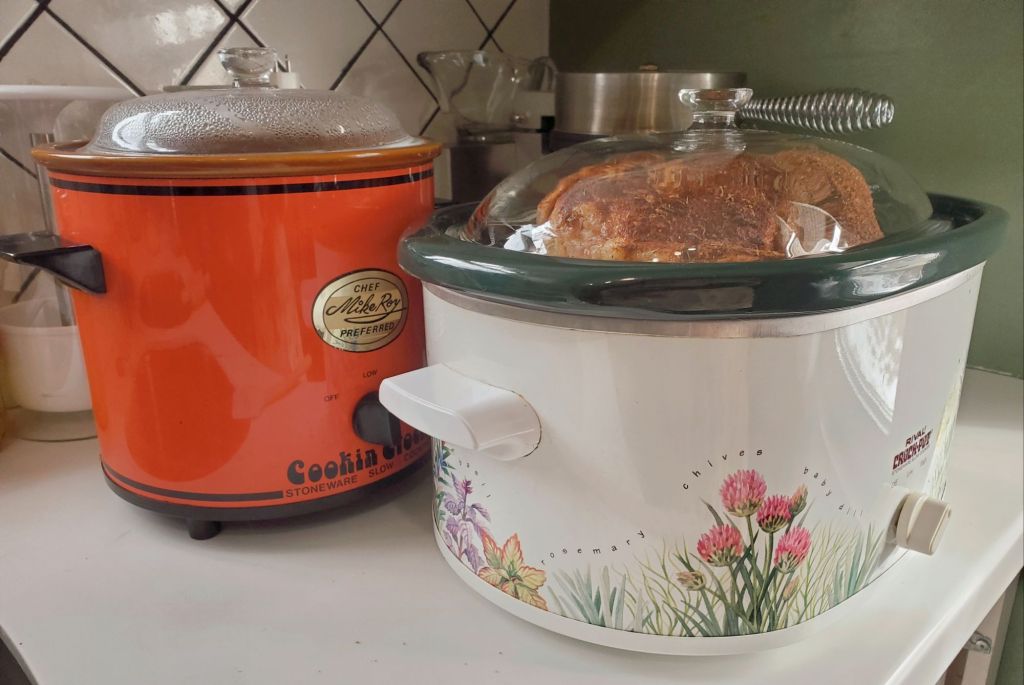 I forgot to get a picture of the finished dish, or of what it looked like packed inside a pita wrap – we were all so hungry by the time dinner was served. Ella made a rotisserie chicken in the crockpot. She’s getting really comfortable working with meat.